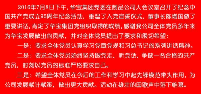 華寶集團(tuán)黨委召開了紀(jì)念中國共產(chǎn)黨成立95周年活動